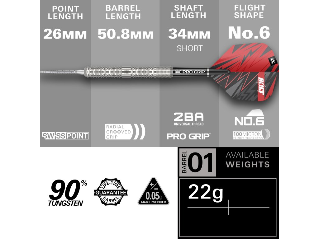 Šipka se vyznačuje sofistikovaným kombinovaným úchopem vylepšeným precizním řezem a radiální drážky poskytující výjimečnou kontrolu a konzistenci.