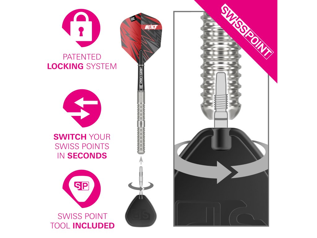 Obsah balení: 1x sada šipek (3 ks), 1x klíč Swiss Point Tool.
