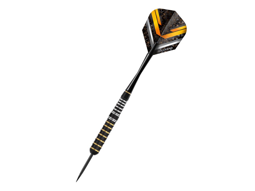 Tyto šipky s paralelním barrelem se vyznačují výraznou dvoubarevnou černo-zlatou povrchovou úpravou.