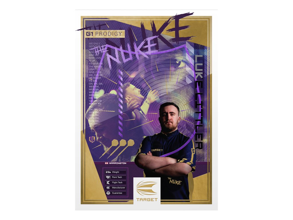 Představujeme Luke Littler Generation One, Prodigy Edition, který se může pochlubit úžasným designem se zlatými skvrnami, odrážející eleganci a exkluzivitu, inspirovanou světem sběratelských karet.