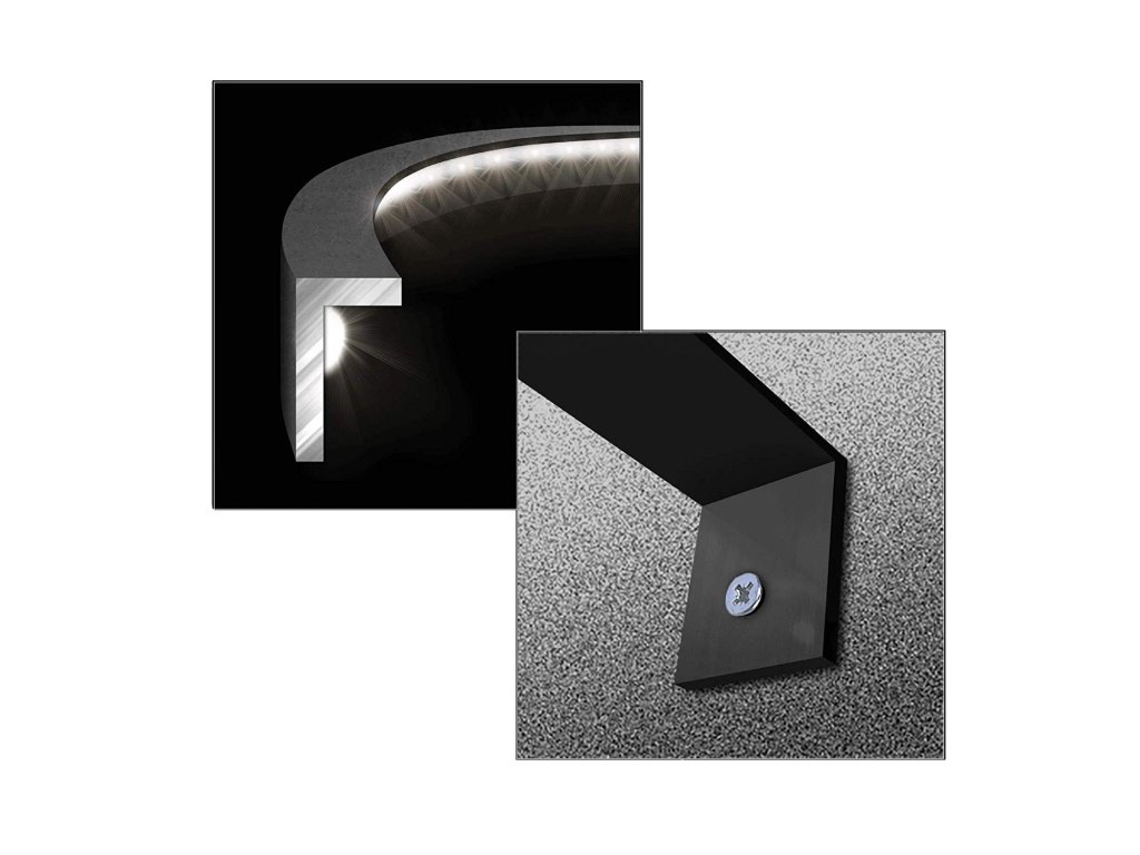 Světelná obruč se pomocí 3 držáků montuje na zeď za terčem, je pevně připevněná.