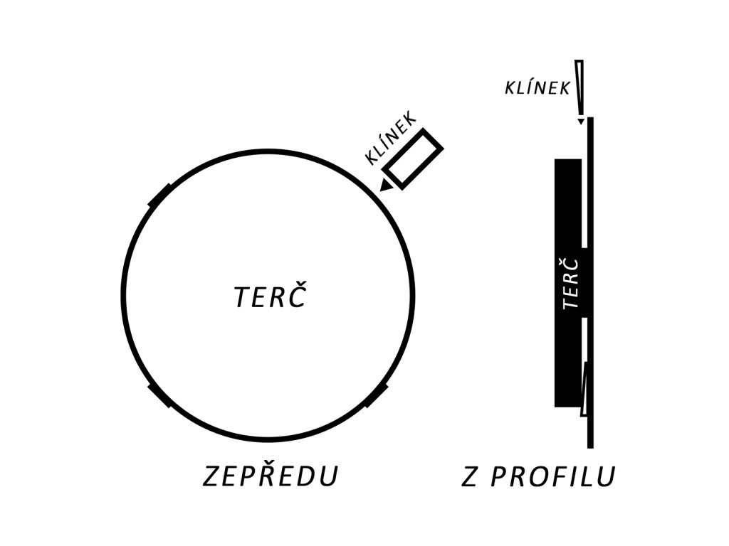 Klínky se vkládají mezi terč a zeď, tak aby byl terč ve svislé rovině.