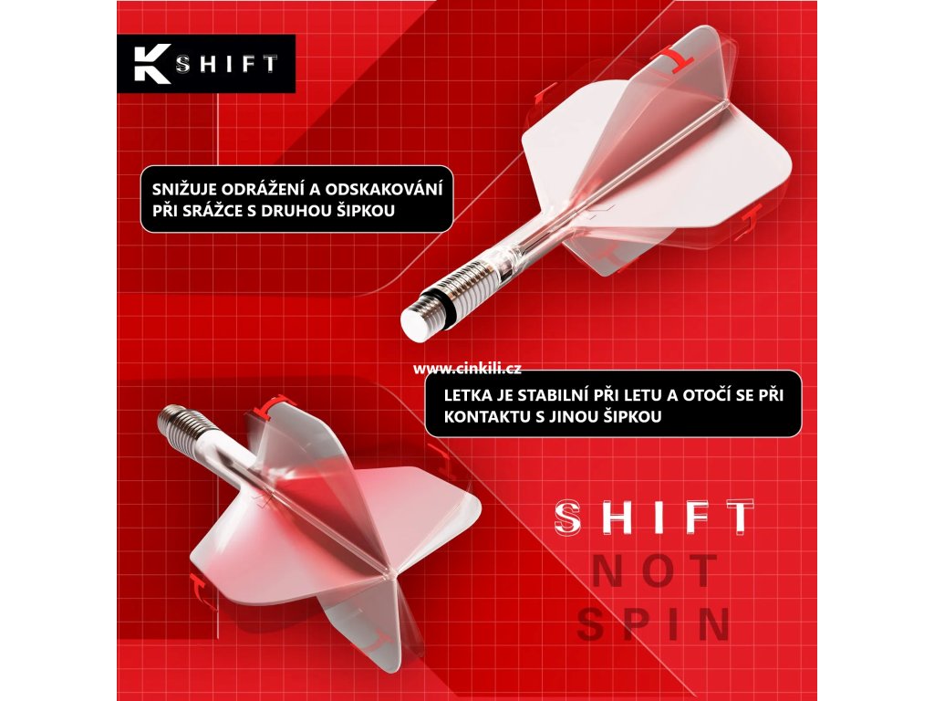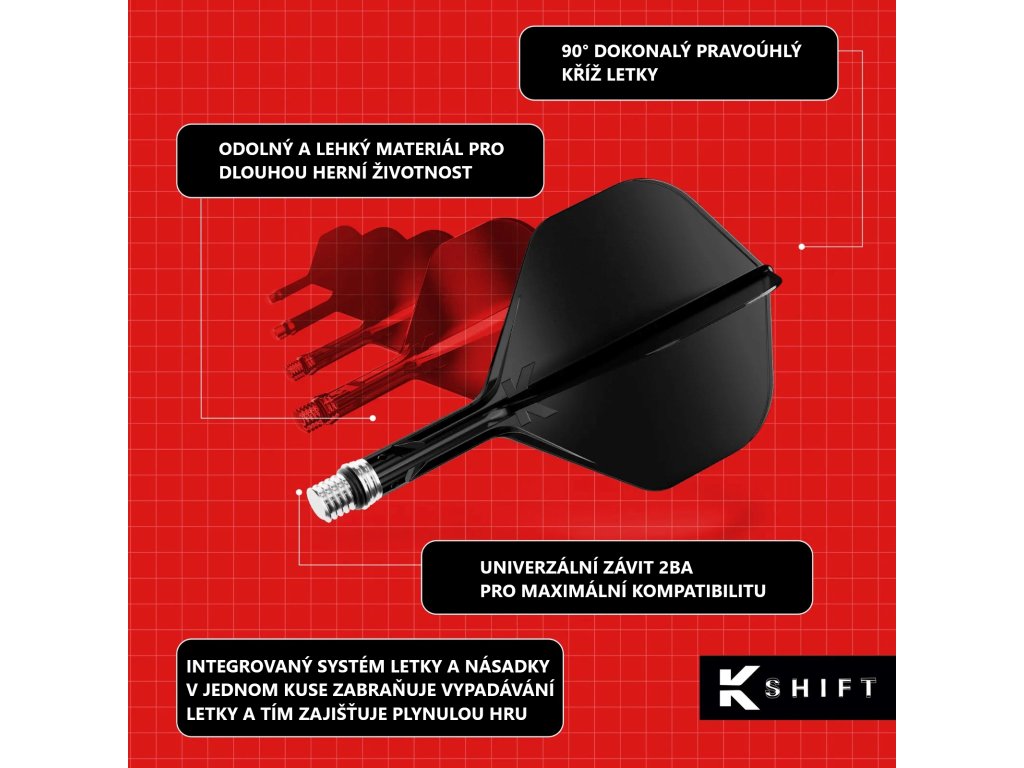 Systém Target Darts K-Shift je vývojem konceptu integrované letky a násadky, navrženého tak, aby aktivně snižoval průhyby během hry.