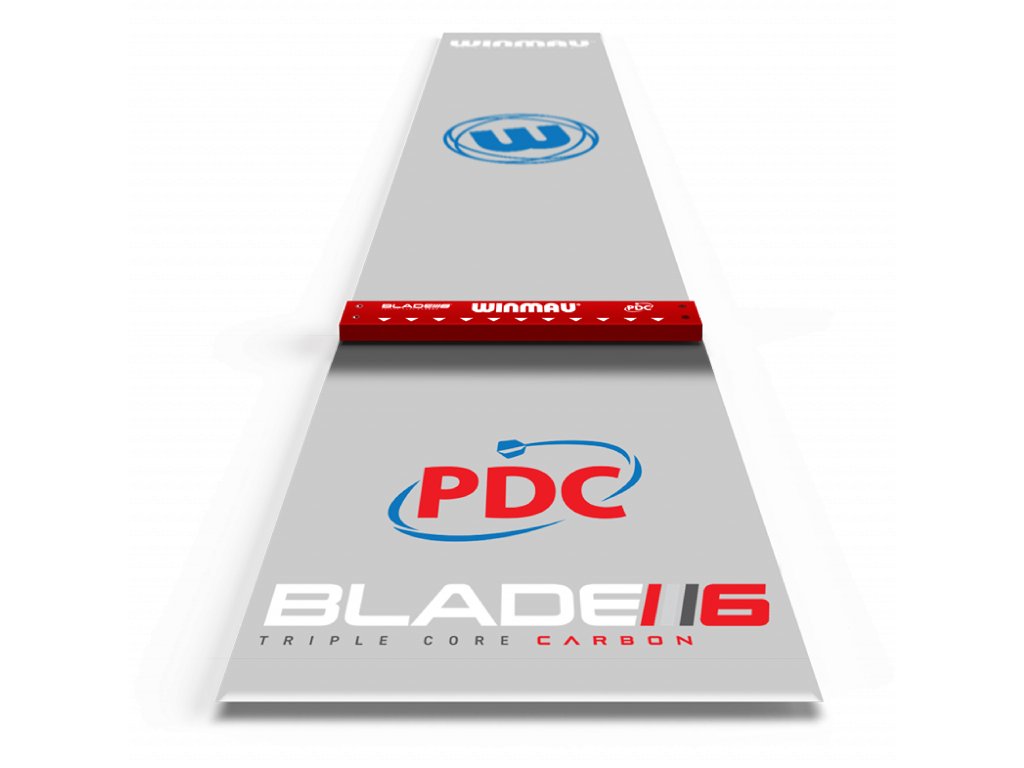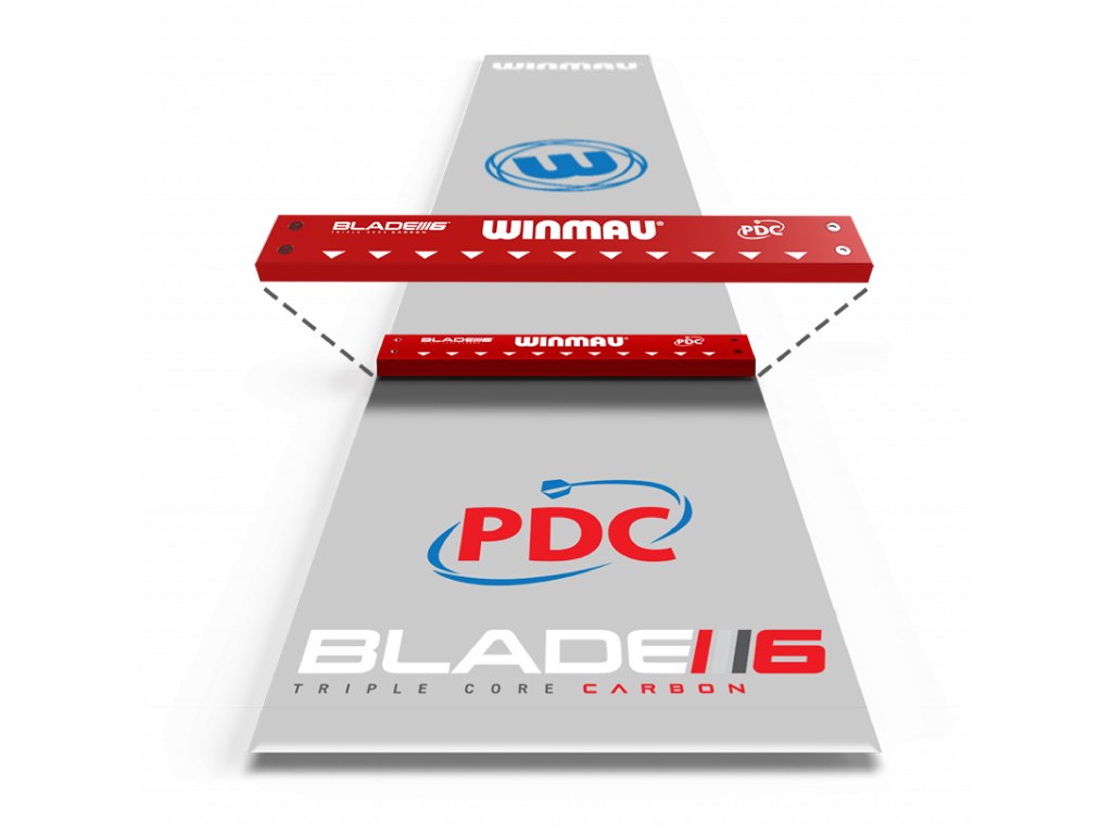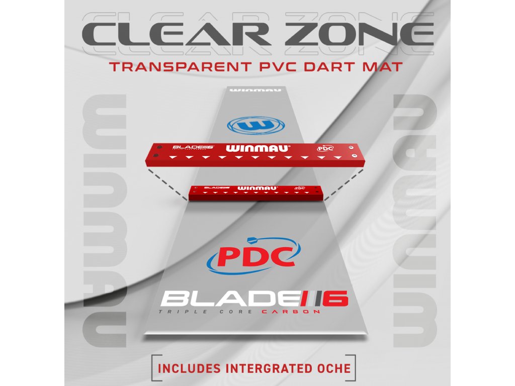 Špičková protiskluzová podložka na šipky z průhledného PVC po celé délce s pevnou opěrnou lištou při oficiálním turnajovém měření, takže můžete házet, aniž byste se dívali dolů. Dokončeno v moderním průhledném stylu se značkové grafice Winmau.