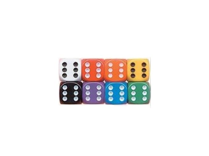 Hrací kostka 6-stěnná jednobarevná. Čísla na kostce 1-6. Výška kostky 12 mm. Kostky jsou v různých barvách. BARVY JSOU VYBRÁNY NÁHODNĚ (máme omezené množství)