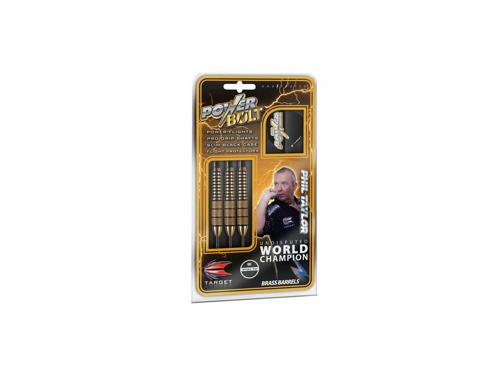 Šipky steel brassové - jsou podpořeny šampionem Philem Taylorem.