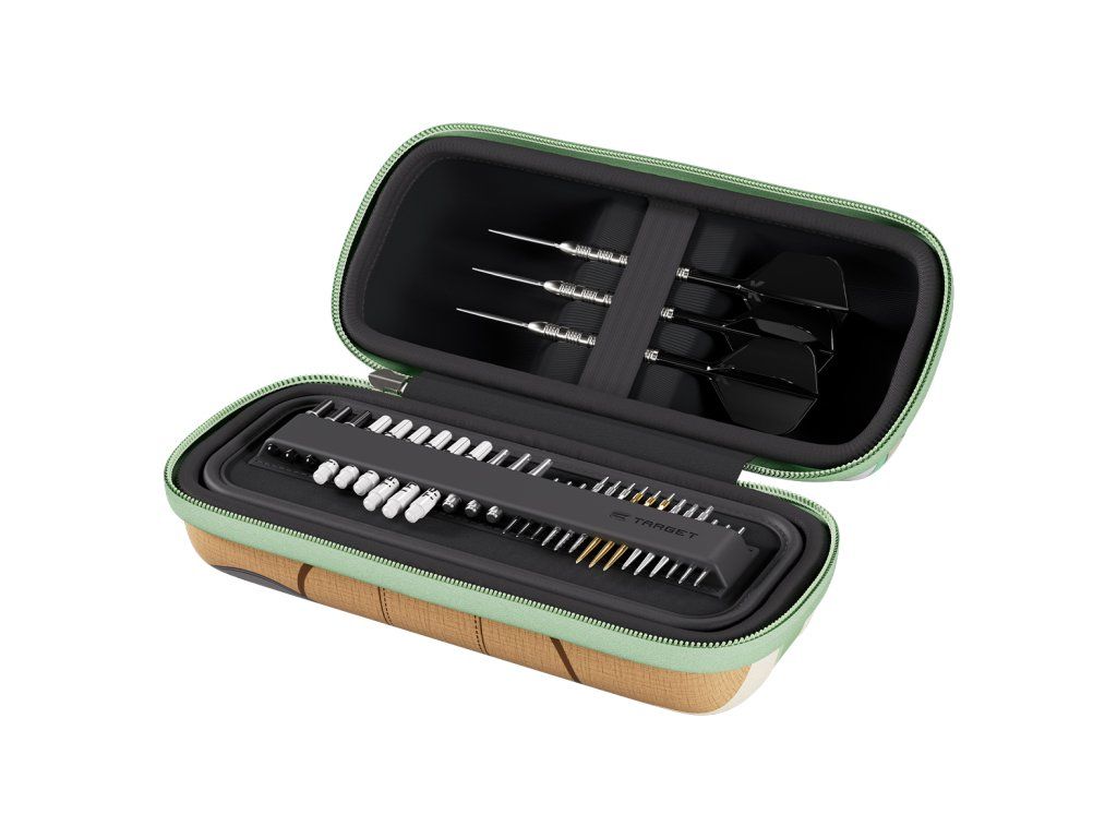 Bezpečně pojme až 6 plně sestavených šipek a obsahuje vyhrazený úložný prostor pro násadky, swiss hroty, letky a nezbytné příslušenství, takže vaše sestava bude organizovaná a chráněná, ať už hrajete kdekoli.