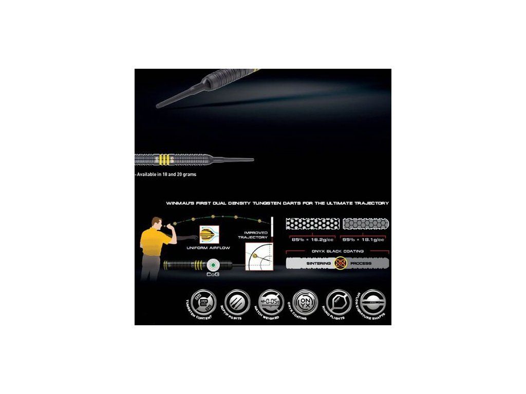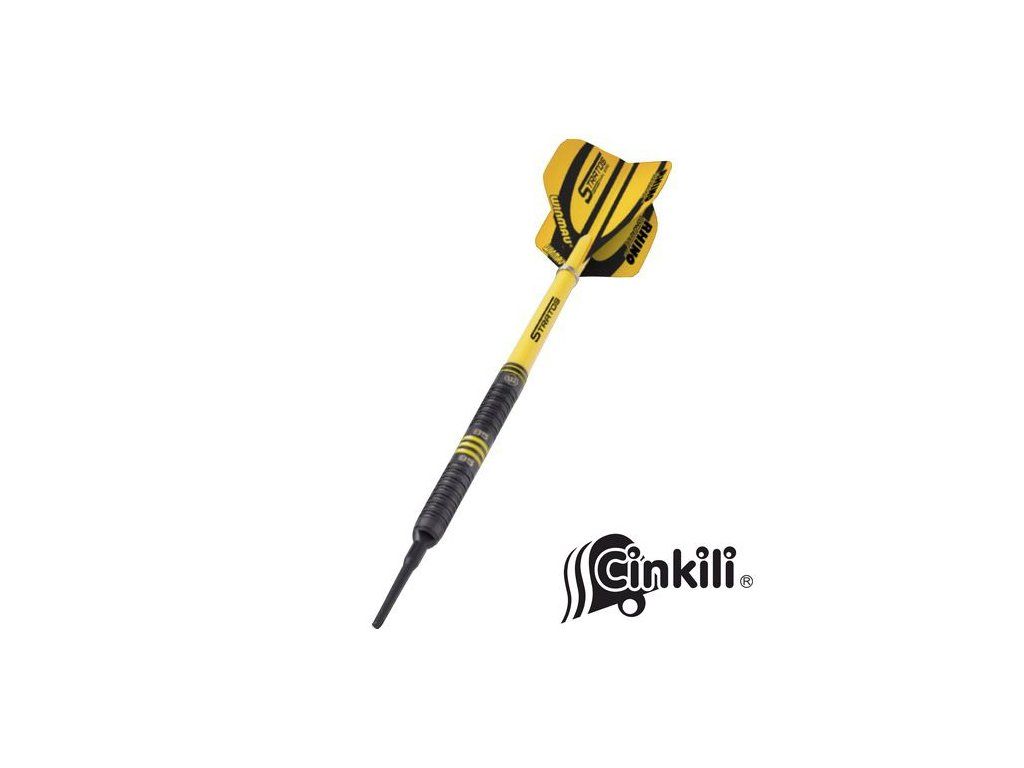 Jedinečné šipky v černém provedení s kontrastní žlutou o dvou slitinách.
