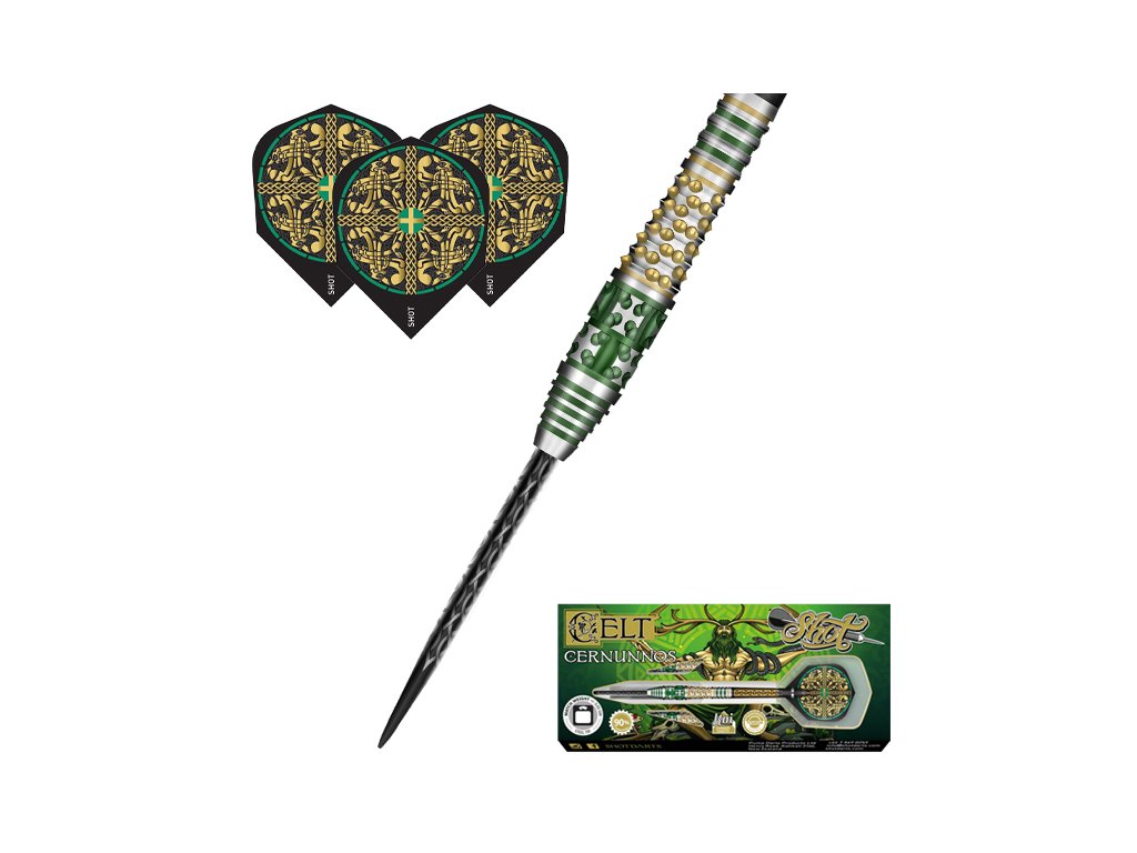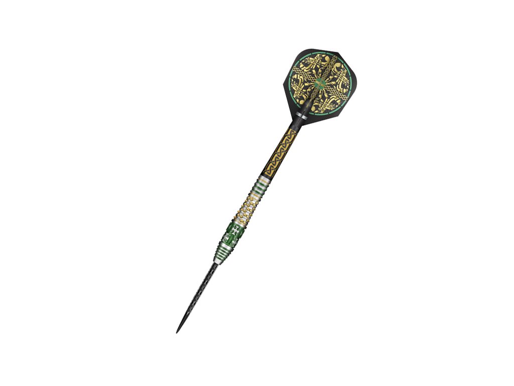 Díky své složité struktuře, keltskému kříži a vřesovým rukojetím vyřezávaným jako kůra mohutných dubů a potažených zelenou a zlatou barvou vám tento barrel z 90% wolframu se závažím na přední straně pomůže vidět dřevo pro stromy.