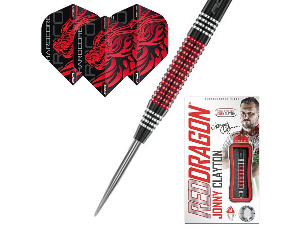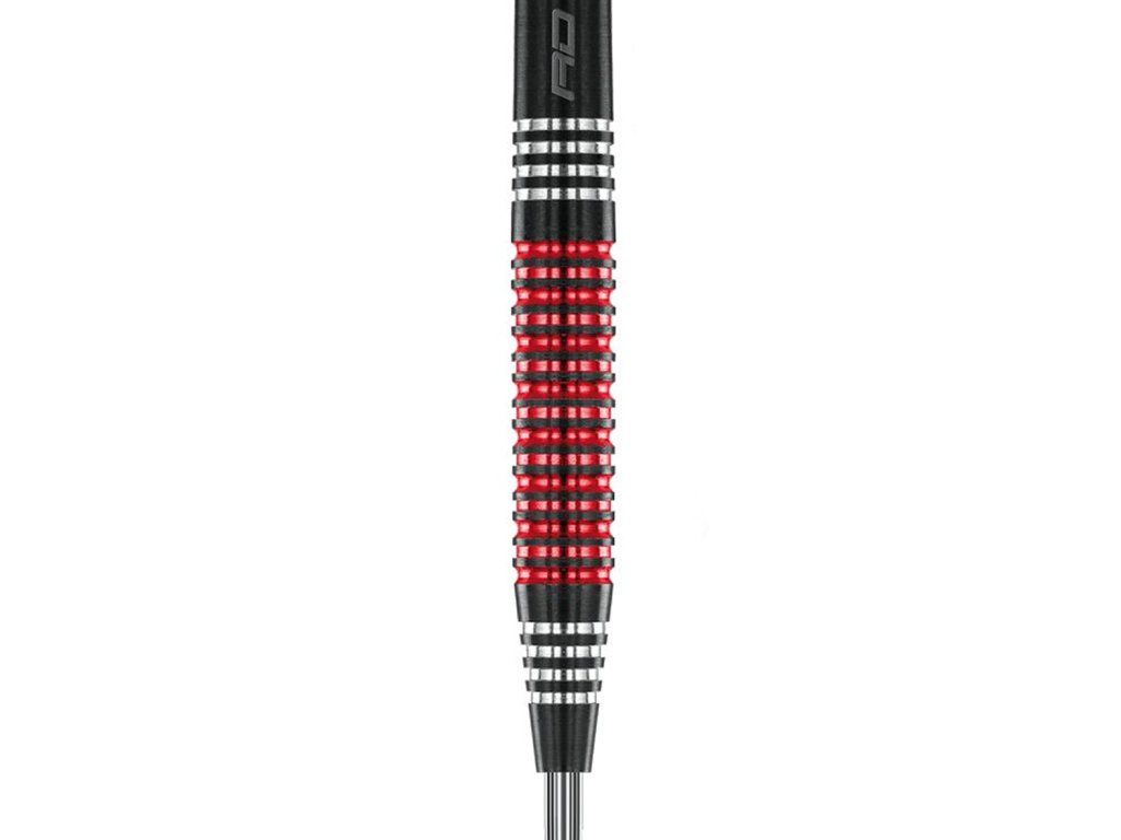 Jemné zkosení, kontury a dvojité prstence vedou Claytona k jeho hlavním televizním titulům PDC. Dokončení s úžasnou kombinací černého PVD povlaku a červených drážek.