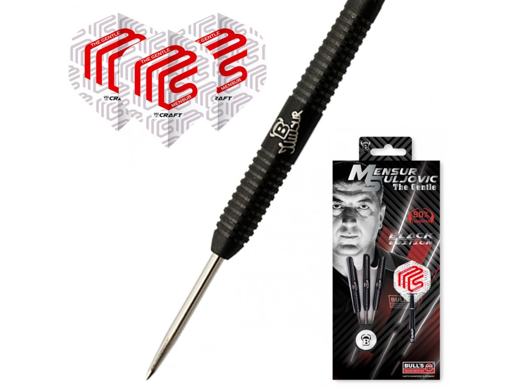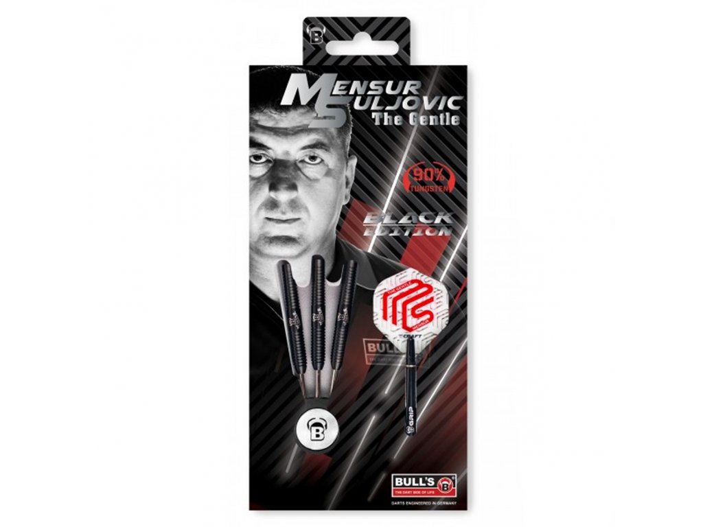 Černá edice BULL'S šipek Mensur Suljovic se skládá z 90% wolframu a má černý prémiový titanový povlak.