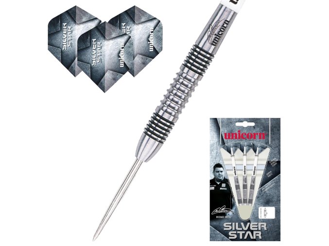 Šipky steel Silver Star je série šipek s kterými hrají ty největší hvězdy v šipkách. Šipky Silver Star mají speciální povrchovou úpravu a propracované drážky a tvary podle jednotlivých hráčů. Garance rozdílu gramáže mezi šipkami 0,1g.