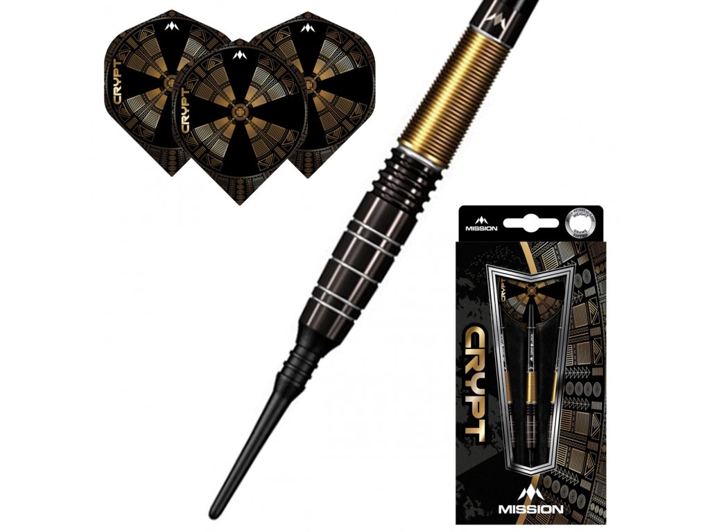 Šipky Mission Crypt mají tvarovaný design barrelu s jemným přepracovaným mikrořezem v zadní části.