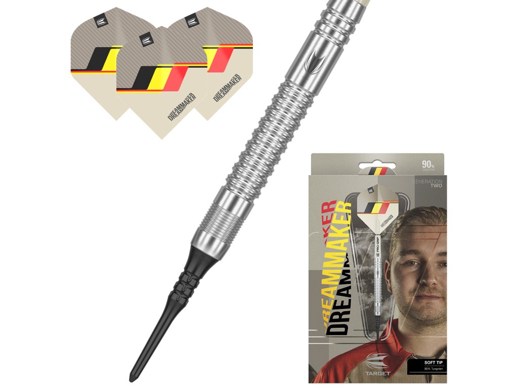 Šipky Dimitri Van den Bergh Generation 2 byly navrženy společně s ‚Dream Makerem‘ podle jeho přesných požadavků. Výsledkem je krásně navržená 90% wolframová šipka, která vyhovuje různým úchopům.