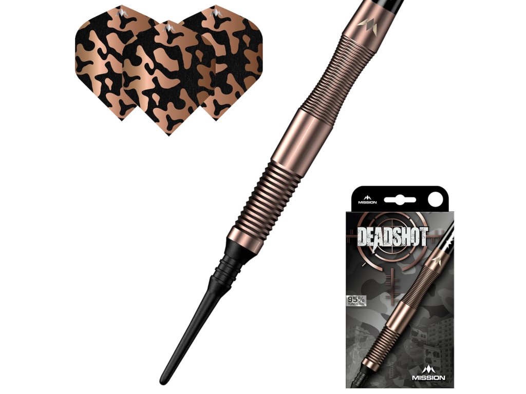 Šipka Dead Shot, inspirovaná jedněmi z nejprodávanějších šipek značky Mission, je vyrobena z prémiového 95% wolframu a po celé délce je opatřena bronzovým křemičitým PVD povlakem.