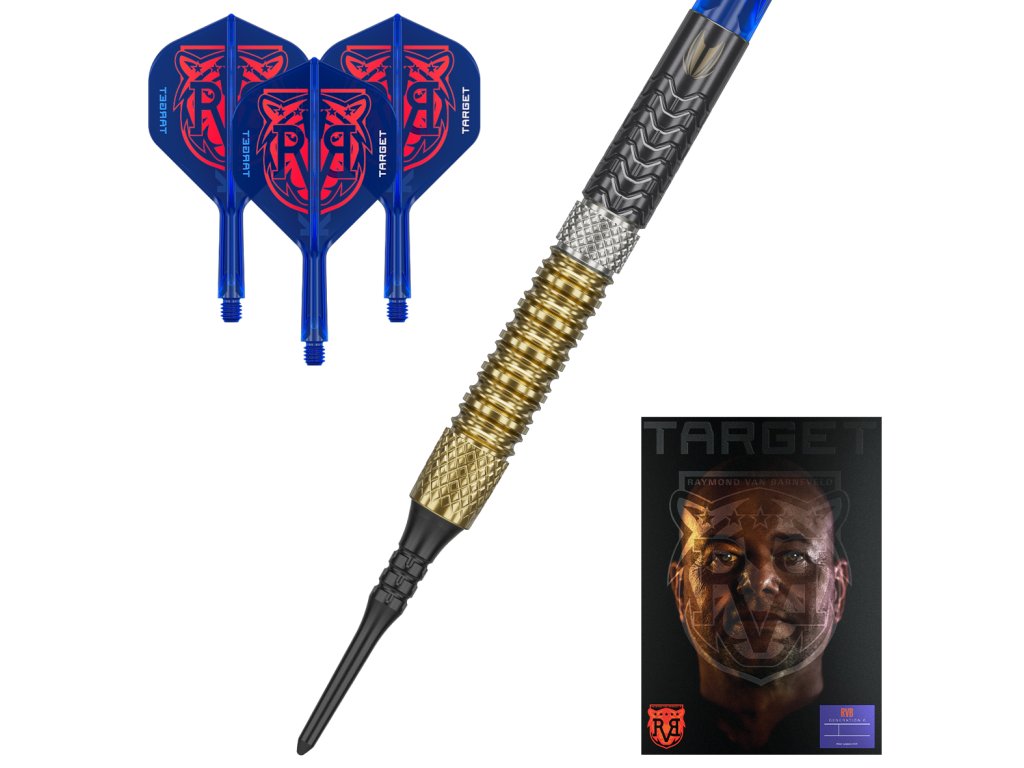 Šipka 6. generace navržená pro Raymonda van Barnevelda podle jeho přesných požadavků, házejte jako Barney se stejnými šipkami, které bere na pódium pětinásobný mistr světa.