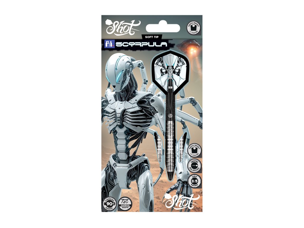 Šipky Shot AI Scorpula 90% jsou navrženy pro ty, kteří si cení lehkého profilu, výjimečné vyváženosti a ostrého designu.
