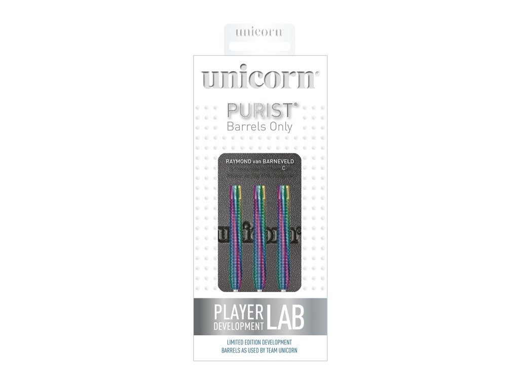 Softové barrely Purist od firmy Unicorn jsou kvalitní wolframové barrely (90% tungsten)s nápisem Unicorn a podpisem Raymonda van Barnevelda. Sada obsahuje pouze barrely se steel hroty (bez násadek a letek).