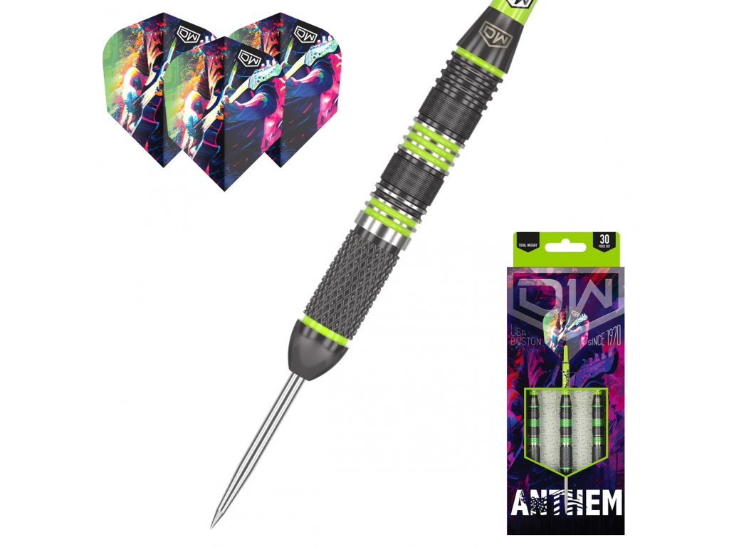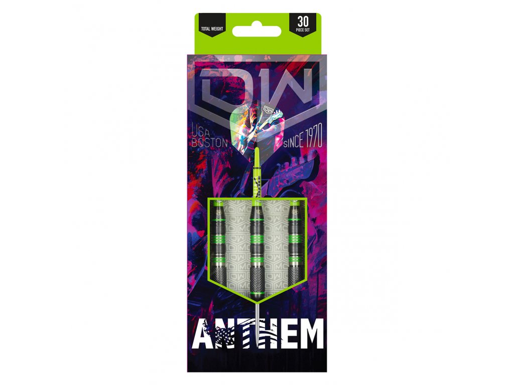 Šipky DW Anthem se svým vyváženým rozložením hmotnosti a živými barvami poskytuje harmonický výkon při každém hodu.