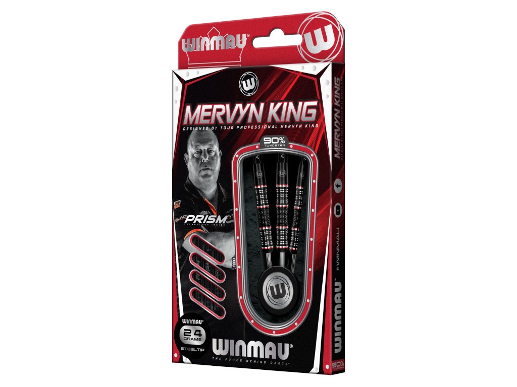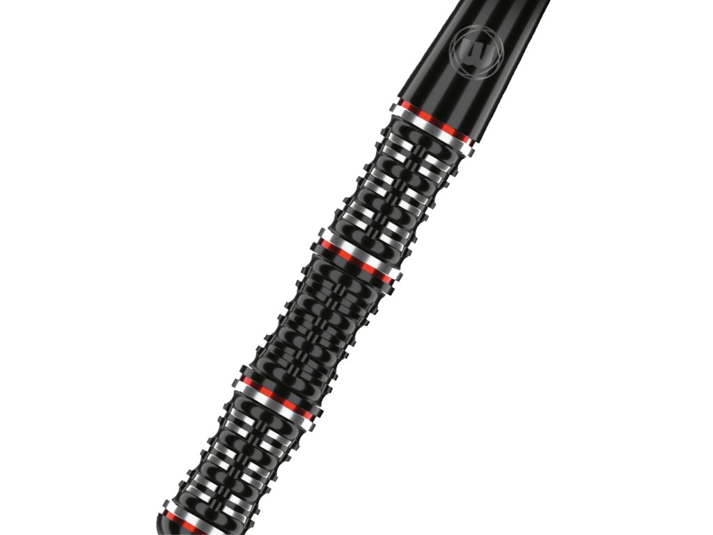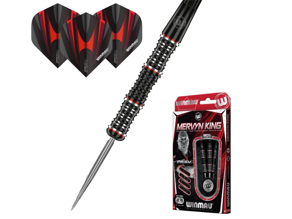 Velice zajímavé šipky od Mervyna Kinga tentokrát v černé provedení s červeno stříbrným kontrastem. Šipky tohoto hráče jsou specifické svými třemi prolisy. Prostě jsou prohnuté na 3 místech, v přední, střední a zadní části.