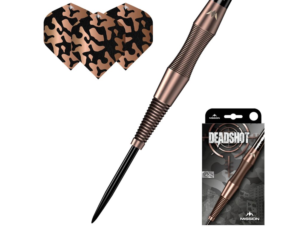 Šipka Dead Shot, inspirovaná jedněmi z nejprodávanějších šipek značky Mission, je vyrobena z prémiového 95% wolframu a po celé délce je opatřena bronzovým křemičitým PVD povlakem.