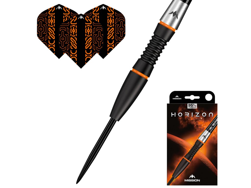 Tyto šipky jsou vyrobeny z prémiového 95% wolframového materiálu a jsou opatřeny černým PVD a oranžovým povlakem.