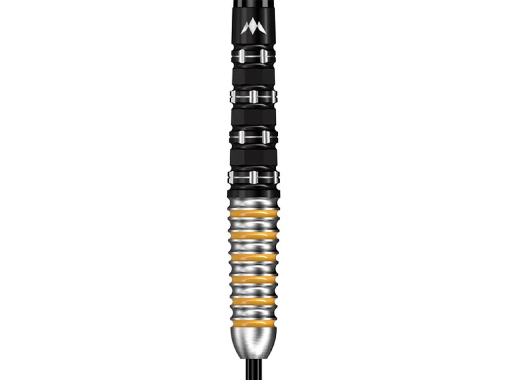 Tato rovná šipka má horizontální frézování a zářezy v zadní části, doplněné černým PVD povlakem, který vede k malé hladké části s laserově leptaným logem Mission.