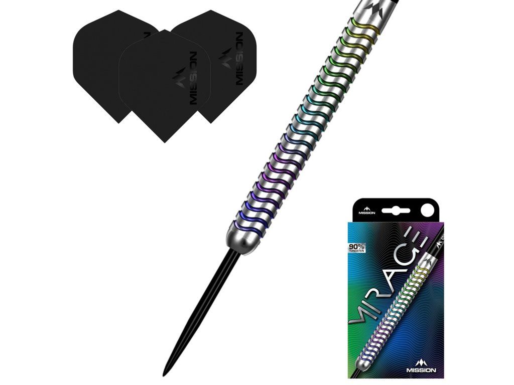 Šipka Mirage je vyrobena z 90% wolframu a vyznačuje se výrazným vzorem téměř po celé délce šipky.