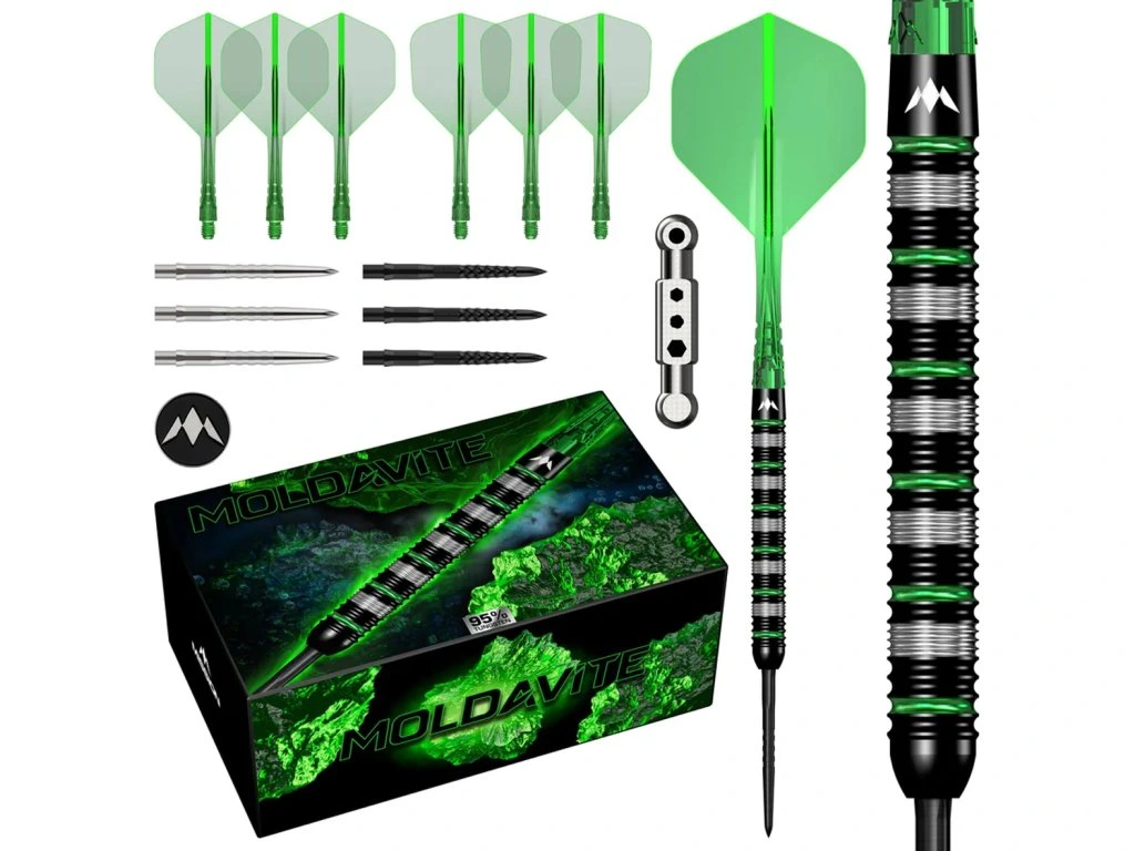 Tyto šipky, pojmenované po vzácném drahokamu moldavitu, „kameni transformace“, jsou vyrobeny z prémiového 95% wolframu a mají černo-zelený PVD povlak.