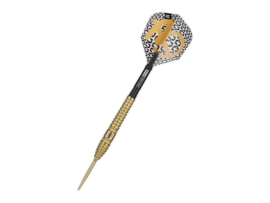Každá sada je osazena zlatými 26mm Swiss hroty, které hráčům umožňují rychle měnit hroty pomocí patentovaných Swiss klíčů Target.