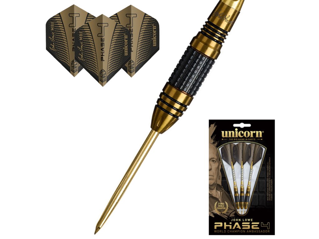 Unicorn John Lowe Phase 4 jsou víc než jen ocelové šipky: kombinují tradici a moderní technologii, jsou vyrobeny na míru pro přesné a stylové házení – vyvinuty ve spolupráci s ikonou šipek Johnem Lowem.